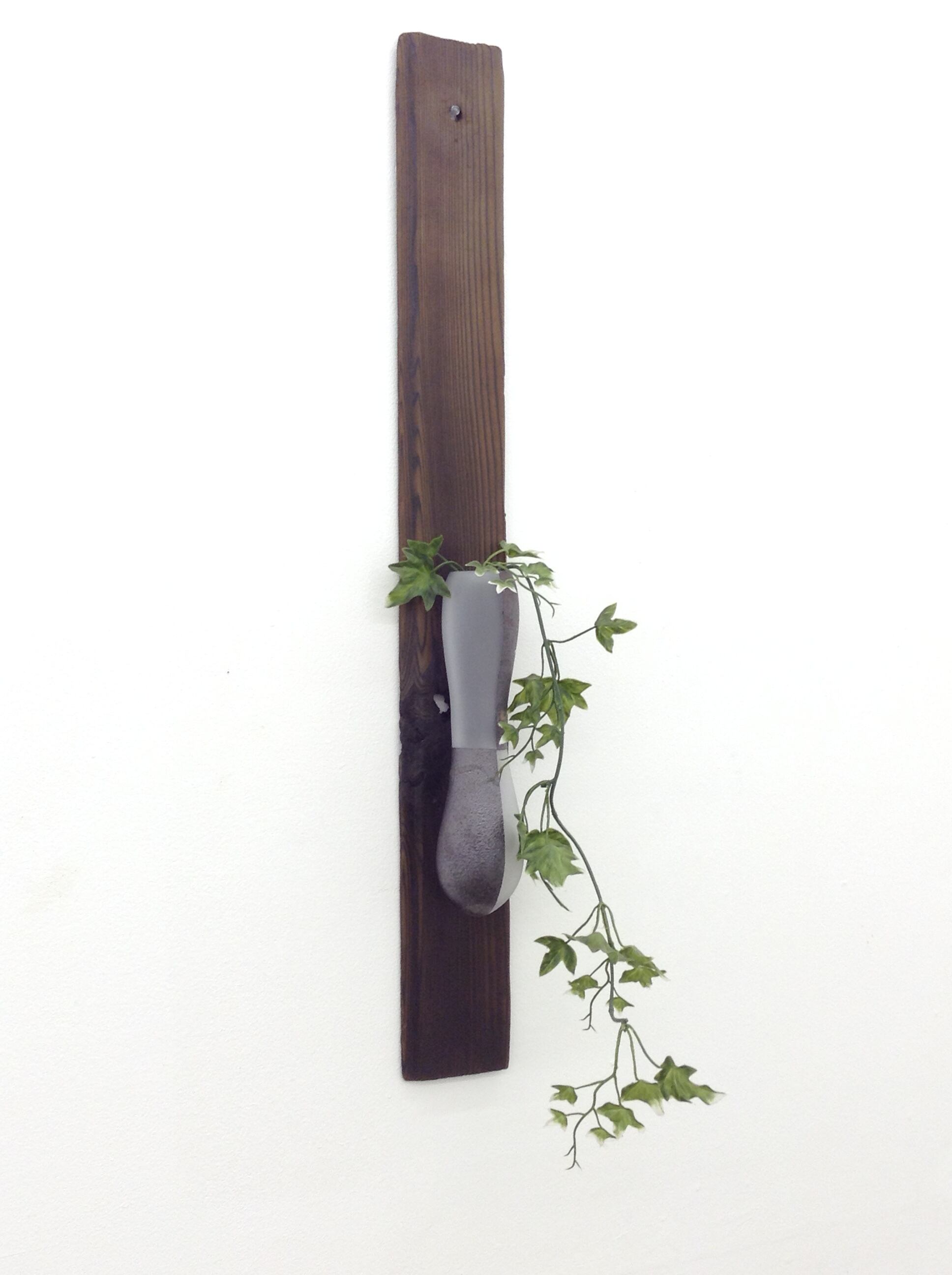 透明ガラスの表面に粉状の黒ガラスを着せ、その上に細い銀澄をロールアップ。徐冷後にサンドブラスト技法で黒ガラスを格子状に削り、シックでセンスの光る個性的な花器に仕上げました。ガラス花器本体は、背板から簡単に外せますので、水替えやお掃除も楽々。本作のみの1点ものです。焼成した背板付き。
